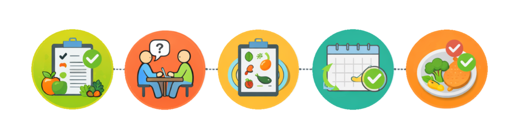 El programa de reeducación de hábitos alimentarios está diseñado para ayudarte a cambiar tus hábitos de forma progresiva, realista y sostenible, sin dietas estrictas.
